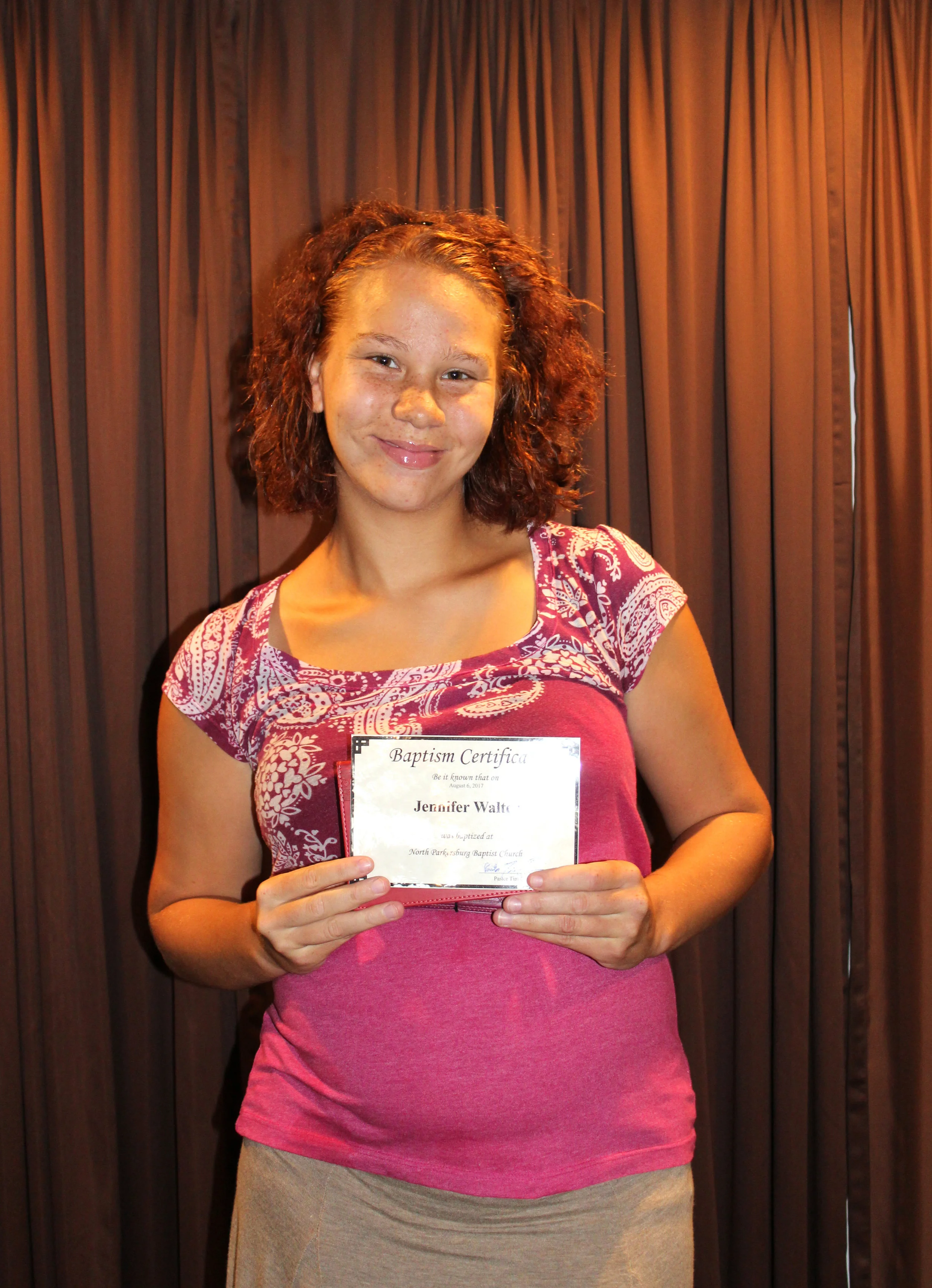 Sunday, August 6th, one of our girls accepted Jesus Christ into her heart as her personal Savior and Lord and was baptized. Congratulation, Jennifer!